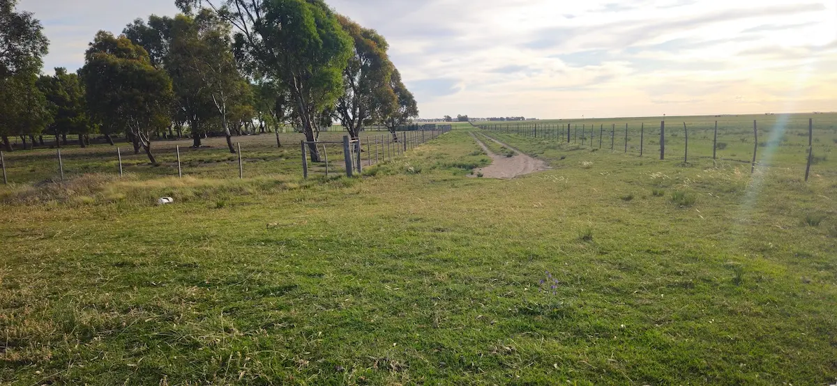 Camino de tierra entre cercos y pastura en finca rural en Buenos Aires.