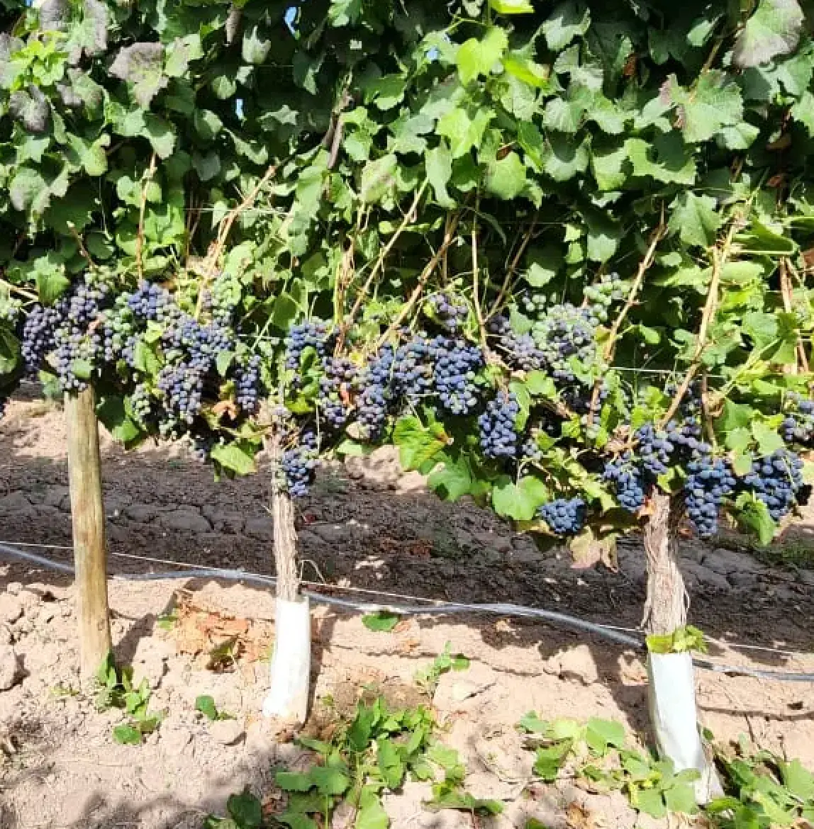 Racimos de uvas maduras en finca vitivinícola en Mendoza listos para la cosecha
