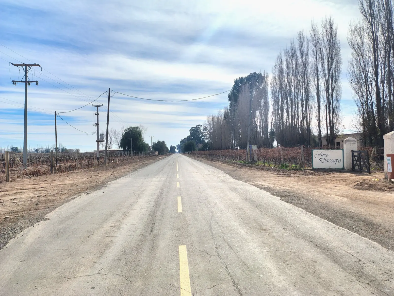 camino asfaltado hacia la finca vitivinícola en Lavalle Mendoza